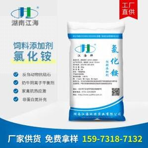 湖南江海環(huán)保實(shí)業(yè)公司生產(chǎn)的飼料級氯化銨是以農(nóng)用或工業(yè)氯化銨為原料經(jīng)過去雜、提純等工藝精制而成。產(chǎn)品純度高,重金屬離子含量低等特點(diǎn)。能作為非蛋白劑補(bǔ)充反芻動(dòng)物蛋白質(zhì)營養(yǎng),也被廣泛作為反芻動(dòng)物抗結(jié)石劑,奶牛產(chǎn)前的陰離子平衡劑,家禽抗熱應(yīng)激藥物,應(yīng)用前景十分廣泛。 產(chǎn)品包裝 內(nèi)塑外編或按客戶要求 批準(zhǔn)文號 湘飼添字(2019)230001 執(zhí)行標(biāo)準(zhǔn) Q...